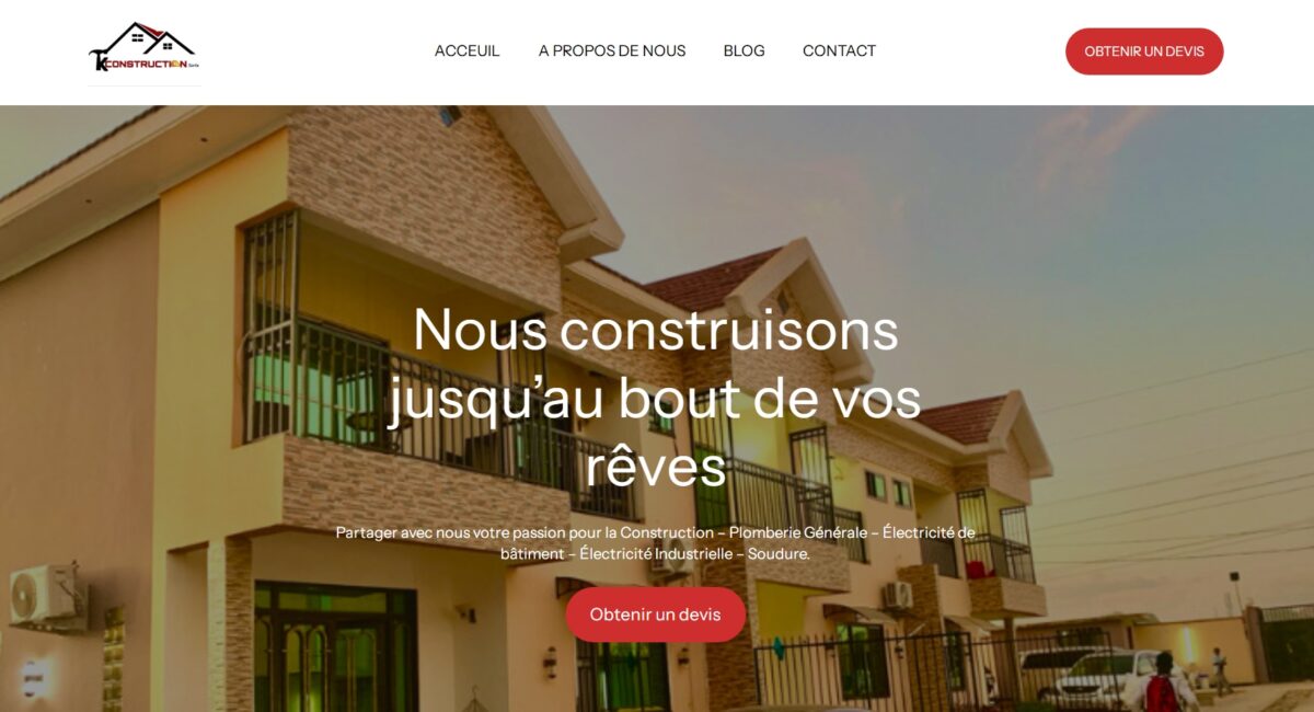 Nous tenons à adresser un grand merci à Monsieur Trésor, Directeur Général de TK Construction, pour sa confiance en nous choisissant depuis Lubumbashi pour concevoir le site vitrine de son entreprise, qui intègre plusieurs technologies innovantes. Je vous invite à découvrir ce projet sur www.tkconstruction-rdc.com et à faire appel à mes services si vous souhaitez créer ou améliorer votre site web.